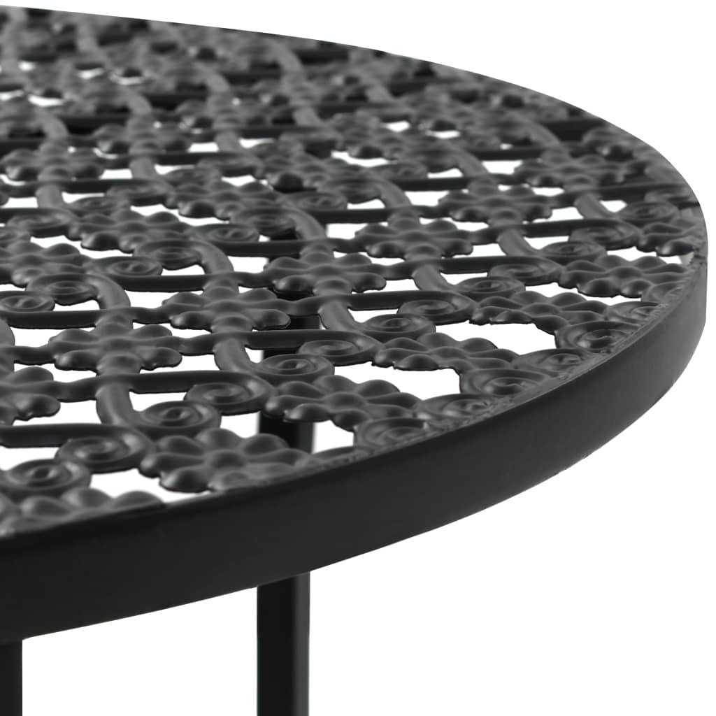 This metal bistro table is adorned with exquisite details, which gives the table an antique look and makes it an eye-catcher in every room. It is designed with a bottom basket for added storage space. The item is easy to assemble.